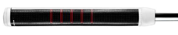 ZERO TAPERパターグリップはグリップ上部から下部まで太さが変わらない「パラレル形状」を採用しています。グリップ上部と下部の太さが均一なため、両手に一貫したグリップ感をもたらします。これにより、下側の手が余計な動きをしにくくなり、左右均等な力感でストロークできます。カラーはブラック、レッド、ブルーの3色展開。サイズはミディアムとラージ(ラージはブラックのみ)からお選びいただけます。
